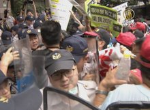 勞團抗議砍7天假 與警爆衝突