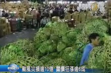 2016-09-29 12:36:33再來看到,梅姬颱風讓全台農損飆破新台幣 十億元,也立刻反應在今天的菜價上,台北農產運銷公司統計,今天29號的蔬菜每公斤平均批發價,來到50.1元,比昨天30.31元,上漲了65%,也比梅姬颱風來臨前的37.1元,上漲35%,菜販表示,颱風後,災損嚴重等候復耕,未來兩周內的菜價還可能更貴。