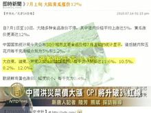 中國洪災菜價大漲 CPI將升破3%紅線