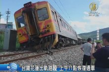 2016-06-23 12:37:17台鐵307次自強號列車,昨天行經花蓮時意外出軌翻覆,造成兩名旅客受傷,台鐵花東線中斷,經台鐵全力搶修,已經在上午11點通車,而這起意外也是6月以來,台鐵的第二起出軌意外。不過,初步研判,已排除高溫導致鋼軌變型,詳細原因,還要再調查。