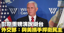 彭斯重磅演說挺台 外交部:與美攜手捍衛民主