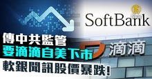 傳中共監管要滴滴自美下市 軟銀聞訊股價暴跌!
