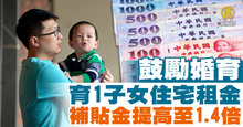 鼓勵婚育 育1子女住宅租金補貼金提高至1.4倍