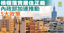 2022-05-19 19:39:56內政部今天說,為落實居住正義,推動興建社宅國家隊、租金補貼、都更危老重建、打擊炒作、民間出租住宅納入社宅體系等5大政策;在務實可行原則下滾動檢討,提供民眾優質可負擔的居住環境。
