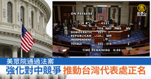 美眾院通過法案 強化對中競爭 推動台灣代表處正名