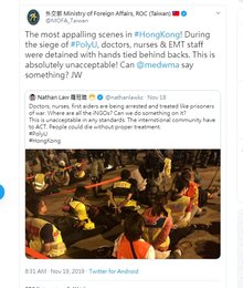 呼應台外長!世界醫學會:醫療失靈無法忍.港警不該干預醫護