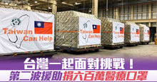 台灣一起面對挑戰!第二波援助捐六百萬醫療口罩