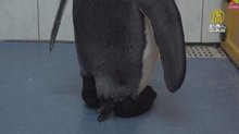 國王企鵝「晨走特訓」助繁殖!園方特製腳套護腳掌