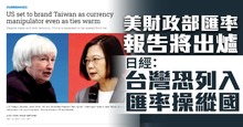 美財政部匯率報告將出爐 日經:台灣恐列入匯率操縱國