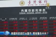 2016-10-16 20:07:07台灣第二次被美國財政部點名,被列為匯率操縱,從事不公平貿易戰的觀察名單,除了台灣以外,還有中國、日本、韓國、德國及瑞士等五國也在名單上。央行今天重申,台灣並沒有操縱匯率,是維持動態穩定,未來將持續與美方溝通。