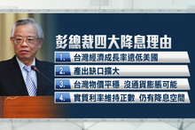 2016-06-30 20:04:45中央銀行今天召開理監事會議,決定第四度調降利率半碼,為了救經濟,央行總裁彭淮南認為,應該要三大政策一起搭配,才能讓經濟可以永續成長。今天記者會上,彭淮南一反過去嚴肅氣氛,用幽默來回應記者提問。