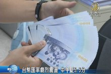 2016-08-11 12:38:20再來看到,在歐系熱錢狂襲,中央銀行昨天放手讓新台幣勁升,終場來到一年新高,今天要挑戰31元大關。不過,新台幣匯率早盤走勢劇烈震盪,開低後 續揚,盤中又 由升轉貶,中午暫以31.28元作收,貶值5.5分。