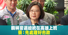 韓稱當選總統在高雄上班 蔡:先處理好市政