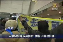 人權惡棍陳政高抵台 閃躲法輪功抗議