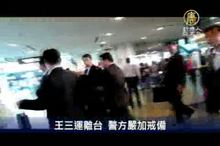 2011-04-25 21:11:12被台灣法輪功團體控告殘害人群罪的安徽省長王三運今天(25號)中午搭機離台,但當王三運出關時,桃園機場警方一反常態,採以嚴格的管制,大批警力戒護。也禁止媒體靠近採訪,現場氣氛相當的緊繃。