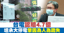 台電認賠4.7億 坦承大停電肇因為人為疏失