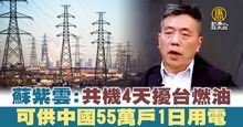 蘇紫雲:共機4天擾台燃油 可供中國55萬戶1日用電