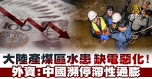 大陸產煤區水患 缺電惡化!外資:中國瀕停滯性通膨