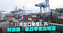 2019-12-09 20:12:21台灣出口情況好轉,財政部周一公布11月出口數字,單位285.8億元美元,不光是歷年次高,也年增3.3%,官員表示,儘管美中貿易戰等不確定因素存在,但也沒有更壞,未來出口表現,預期第四季可望穩定,轉為小幅成長。