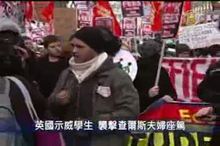 2010-12-10 22:33:59英國議會9日通過了飽受爭議的大學學費上調議案,英國各地大學生再次聚集在倫敦舉行遊行抗議這項提案,並和警方發生衝突。英國王儲查爾斯親王和他妻子卡蜜拉乘坐的小汽車在前往倫敦市中心的劇院時,也遭到參加學生抗議活動的示威群眾攻擊。