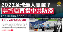 2022-01-05 20:27:32美國智庫發布2022年全球十大風險預測,最大風險來自中共的清零政策。報告認為,面對傳播力極強的中共病毒Omicron變種,中共激烈的清零手段將會失敗,這將加大全球供應鏈中斷和通貨膨脹的壓力。