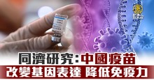 同濟研究:中國疫苗改變基因表達 降低免疫力