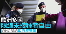 歐洲多國限縮「未接種者」自由 WHO喊話政府應審慎
