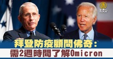 拜登防疫顧問佛奇:需2週時間了解Omicron