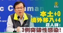 本土+0 境外移入+4 莊人祥:3例突破性感染!