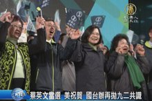2016-01-17 20:06:05民進黨總統當選人蔡英文當選之後,美國白宮和國務院都發來祝賀,而中共國台辦則是重申九二共識,陸媒也低調處理。