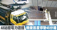 2017-07-06 20:08:42再來看到,桃園機場捷運今天上午首度停擺45分鐘,1千多名旅客受到影響早上6點半,一輛吊臂車撞上A8捷運站下方的電力設施,造成供電異常,所幸在7點15分,電力完全恢復,這也是機捷營運以來,首次全線停擺。