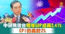 中研院估台明年GDP僅2.41% CPI仍高於2%