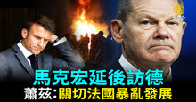 馬克宏延後訪德 蕭茲:關切法國暴亂發展