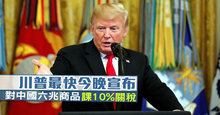 川普最快今晚宣布 對中國六兆商品課10%關稅