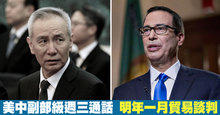 2019-01-30 20:12:58接下來,一連串的新聞,我們帶您鎖定,今明兩天,本週的重頭戲,美中兩國,將進行貿易戰12月休戰以來,最高級別的貿易談判。中方代表,中國國務院副總理劉鶴,已經抵達美國。美方則由美國貿易代表萊特海澤領軍。川普還將在31號,與劉鶴會面。美國財政部長梅努欽,今天接受媒體專訪時表示,預計這次談判,可以取得「巨大進展」。