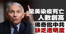 全美染疫死亡人數創高 佛奇批中共缺乏透明度
