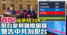 首次!法參院304:0挺台參與國際組織 無懼中共