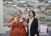 2023-10-13 13:20:34屏東縣與馬紹爾米利環礁市(Mili Atoll)姊妹市喜迎締結4週年,馬紹爾群島共和國駐台新任大使卡蒂爾女士,昨(12)日偕同戴安珍副館長拜會屏東縣長周春米,雙方就農業、教育、觀光推動等面向進行相互交流,拜會後縣長更邀請大使與學生們,於11月到訪屏東參與斜坡上的藝術季,一起唱歌跳舞,感受南國的熱情。