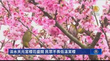 淡水天元宮櫻花盛開 民眾不畏低溫賞櫻