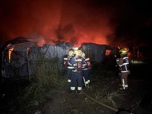 2021-11-17 08:32:08新北市新店區一處存放佈景道具的鐵皮倉庫16日晚間近11時許竄火舌,熊熊火光直衝天際,消防局獲報出動上百名消防人員前往灌救,幸無人受傷受困,火勢接近12時撲滅。