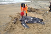 活體革龜擱淺福隆沙灘 海保署立即啟動救援