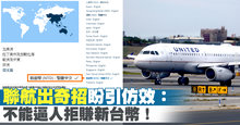 聯航出奇招盼引仿效:不能逼人拒賺新台幣!