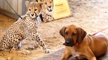 陪獵豹玩 當老虎保母 都難不倒狗狗