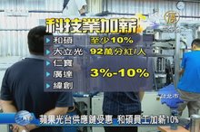 2016-01-04 20:45:572016年第一個開工日,科技業傳來好消息,像是和碩將會大幅度替員工加薪平均10%,而股王大立光,則有92萬元以上的員工紅利,普遍來看,2016年科技業加薪幅度在3%~10%之間。