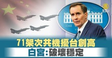 71架次共機擾台創高 白宮:破壞穩定、增誤判