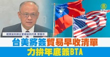 2023-02-20 07:10:40美台經貿關係升溫,來看到,台美21世紀貿易倡議。第二次實體談判會議在1月落幕,當時政府表示數週內會簽署早收協議,目標要在年底簽「雙邊自由貿易協定(BTA)」。根據平面媒體報導,由於進度良好,台灣與美國有望在上半年提早簽署BTA,從有共識的5項議題,陸續擴張至12項。
