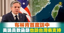 布林肯首度訪中 美議員致函籲也訪台灣表支持