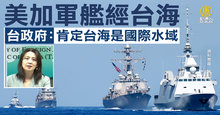 美加軍艦經台海 台政府:肯定台海是國際水域