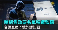 暗網售政要名單稱遭監聽 台調查局:境外認知戰
