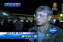 2012-09-29 21:15:49旺中併購中嘉案有條件通過後,外界聚焦反媒體壟斷。多位傳播名人,包括前中時副總編馮光遠、前公視總經理胡元輝、台大新研所教授張錦華,在即將播出的新唐人新聞新視野節目中表示,台灣媒體遭紅色資本威脅滲透,反媒體壟斷立法,勢在必行,並且應該納入公民參與機制。